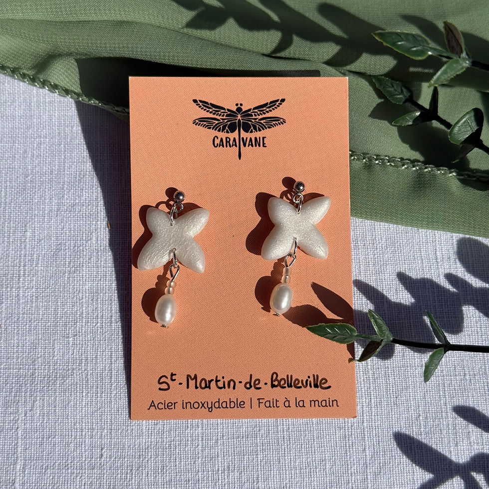 Les bijoux sont en pâte polymère confectionnés à la main par moi-même. C'est une pâte que je viens façonner puis cuire pour qu'elle durcisse. Chaque pièce est confectionnée avec soin et amour. Elle requiert plusieurs heures de travail minutieux, permettant la réalisation de créations uniques et colorées. Toutes les attaches sont en acier inoxydable pour une meilleure durabilité. Je souhaite vous proposer la meilleure qualité possible pour que vous puissiez garder vos bijoux dans le temps.